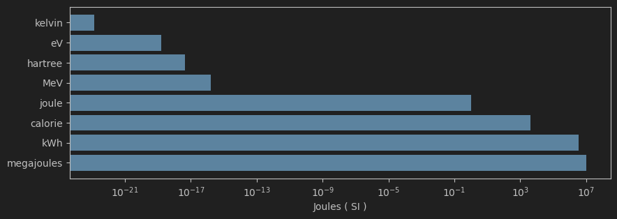 Energy, measured in Joules, is the the ability to do work. Total Energy is a Constant of Motion, where the Total Energy is the sum of “all” forms of energy. A few forms can be: